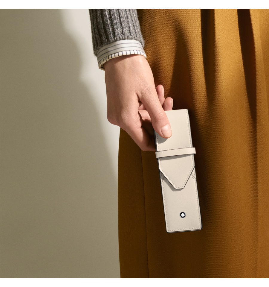 L’étui pour 2 instruments d’écriture Meisterstück est le moyen idéal pour transporter vos instruments d'écriture en toute sécurité. Fabriqué en cuir beige nuage d'une grande brillance, son intérieur étroit peut accueillir deux stylos bille ou à plume de la taille d'un Meisterstück Classique ou d'un LeGrand. Grâce à sa taille compacte, l'étui pour instruments s'adapte à la plupart des poches et des sacs.