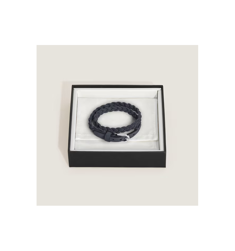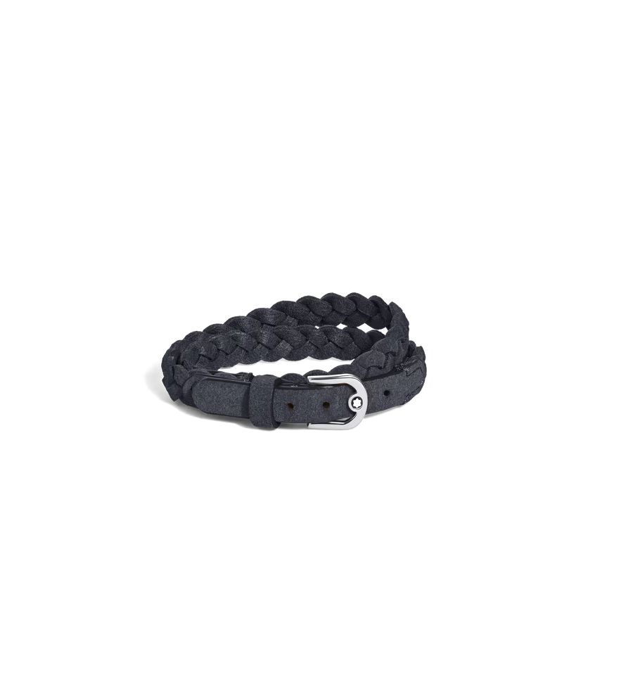 Ce bijou, fabriqué en cuir suédé, est doté d'un fermoir en acier inoxydable poli, orné de l'emblème Montblanc.