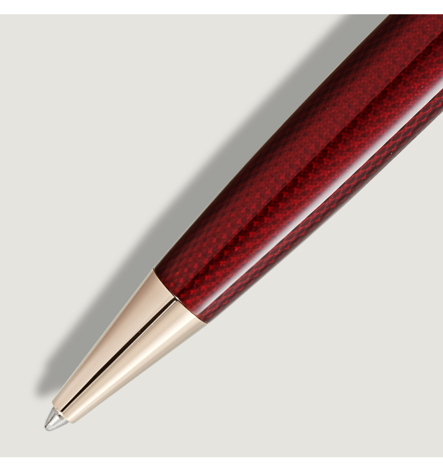 Lorsque le soleil descend, il baigne le ciel d'une chaude lumière dorée et de riches nuances de rouge. Inspiré par les couleurs envoûtantes du coucher de soleil, le Meisterstück Solitaire Golden Hour LeGrand présente un motif hexagonal gravé, recouvert d'une laque rouge bordeaux translucide et d'attributs revêtus d’or signature. Le motif hexagonal dont sont ornés le corps et le capuchon de l'instrument d'écriture rappelle la réfraction de la lumière à l’heure dorée en milieu urbain. Avec l'or signature et/ou le revêtement en or signature, Montblanc décrit la nuance claire de l'or jaune qui est devenue une couleur appréciée pour les instruments d'écriture de la Maison.