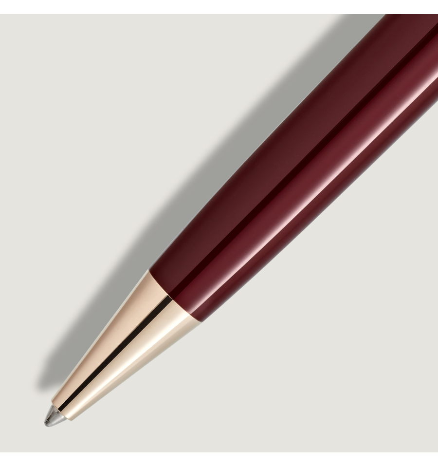Le design intemporel du Montblanc Meisterstück Midsize rouge bordeaux fait écho à l'histoire de la Maison, le bordeaux étant une teinte dominante depuis les années 1920. Depuis, cette couleur est restée un élément essentiel de l'héritage de Montblanc. Le capuchon et le corps en résine précieuse bordeaux sont ornés des attributs or signature et de l’emblème blanc iconique de Montblanc incrusté au sommet du capuchon. Avec l'or signature, Montblanc décrit la nuance claire de l'or jaune qui est devenue une couleur appréciée pour les instruments d'écriture de la Maison.