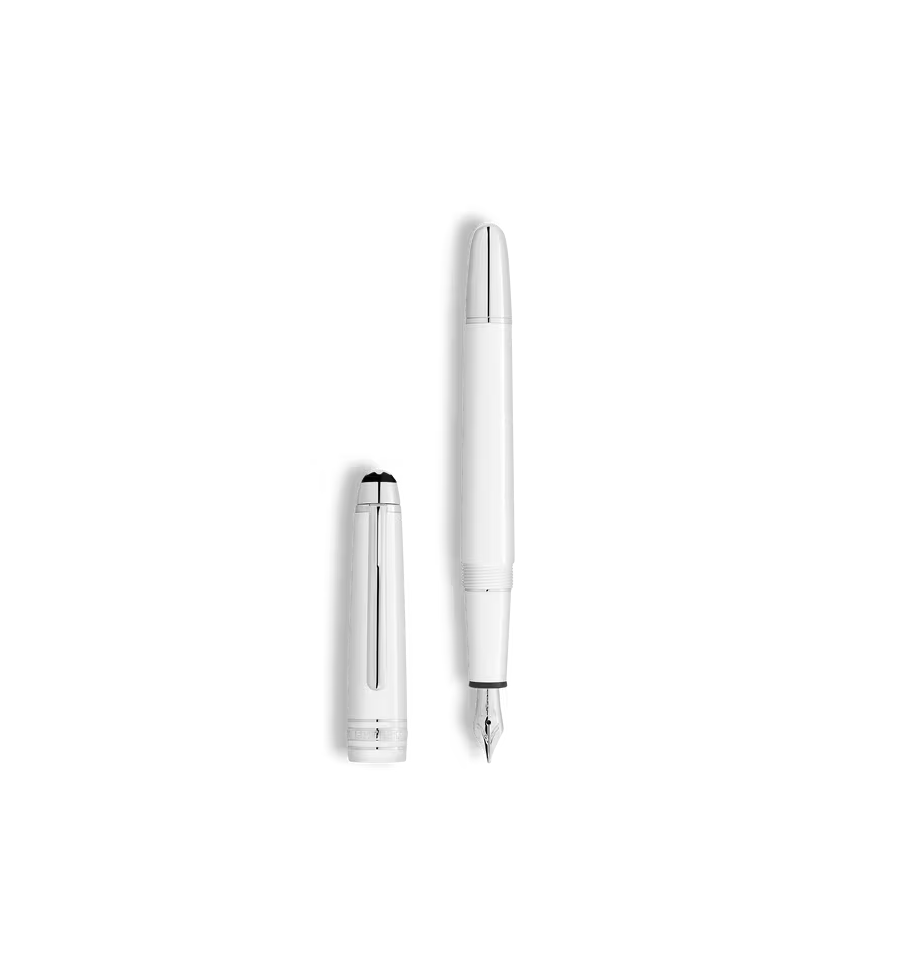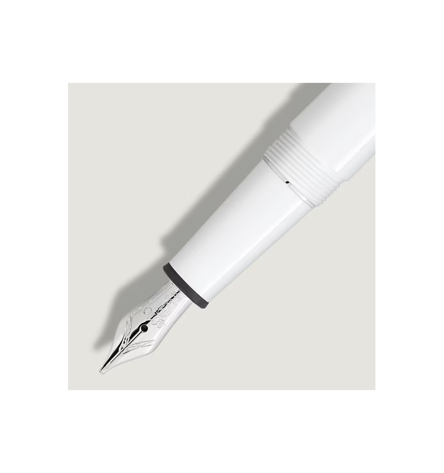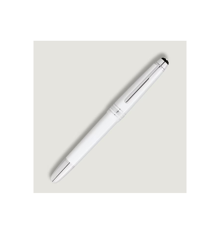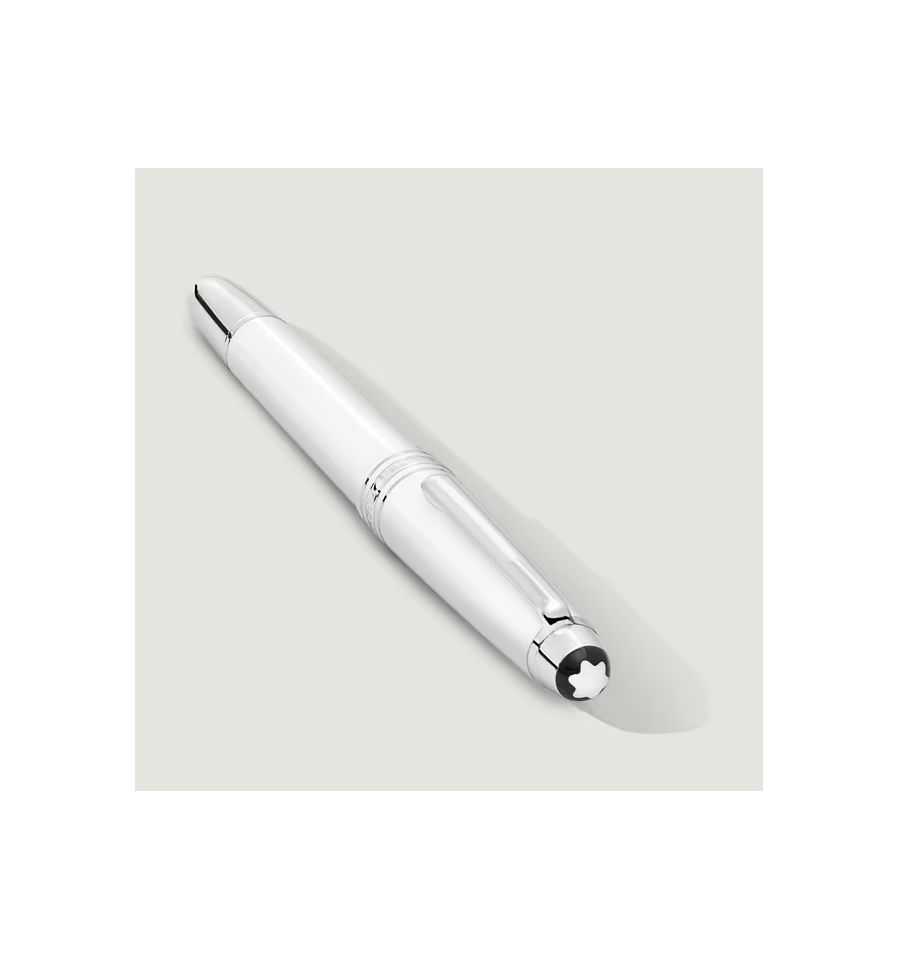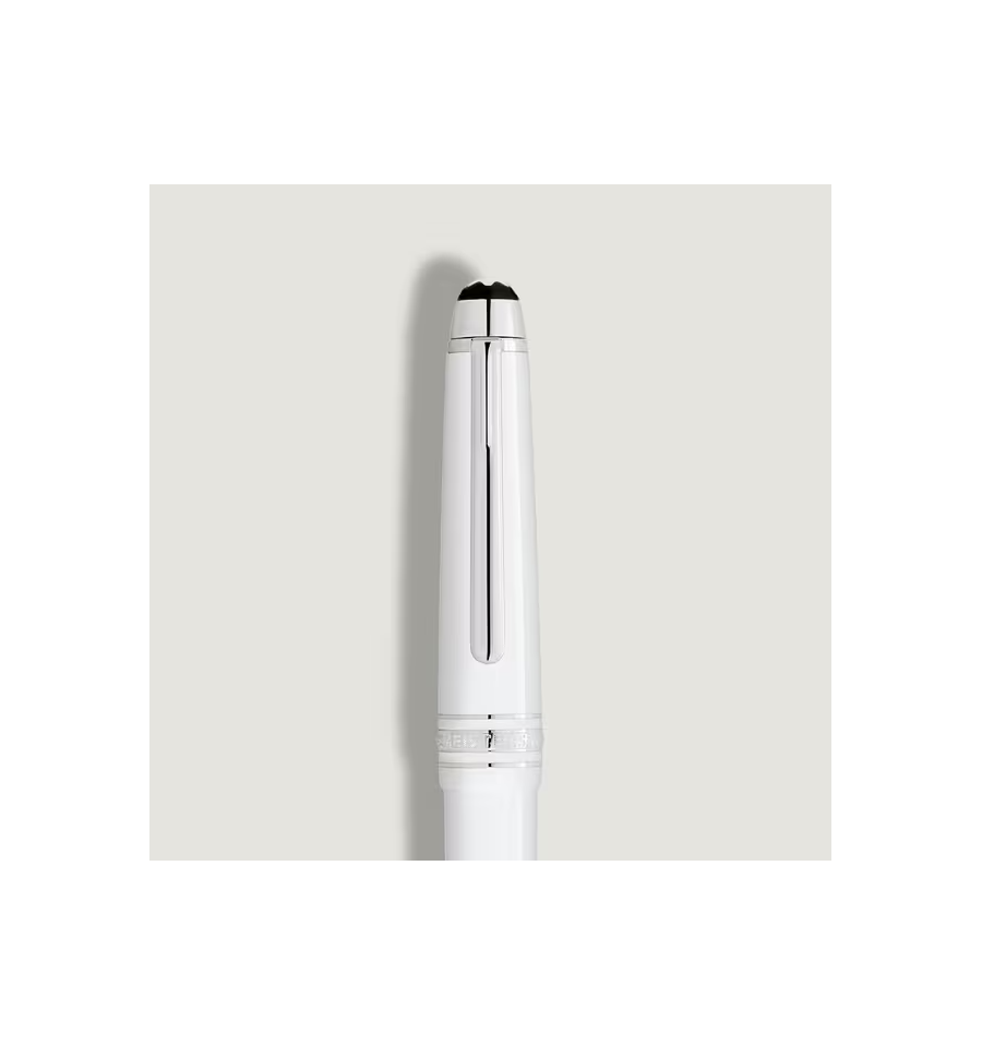 Le stylo plume Meisterstück Classique en résine précieuse blanche avec d'élégants attributs platinés, surmonté de l'emblème Montblanc blanc incrusté dans le capuchon, devient une icône du design distinctive. Le stylo plume est doté d'une plume en or massif Au 585/1000 minutieusement travaillée à la main et rhodiée.