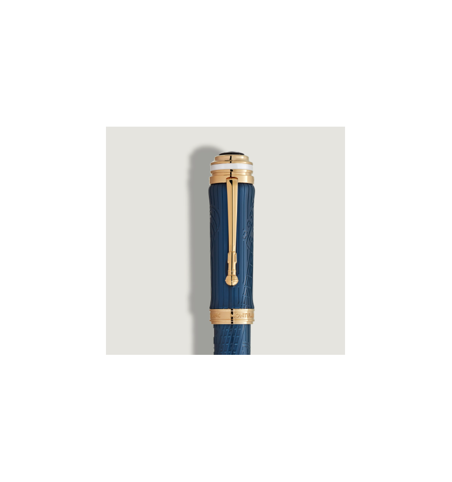 Dans l'histoire passionnante de la musique rock, peu de noms ont brillé avec autant de constance que celui de Queen. Fort d'une carrière de plus de cinq décennies, le groupe est l'un des plus grands succès de tous les temps. Au cours de cette période, Queen a incarné le pouvoir de la créativité musicale et la plupart de leurs chansons sont restées en tête des hit-parades pendant des semaines. Ils ont créé une sorte d'univers musical qui leur est propre, composé d'une combinaison de hard rock, de glam rock, de pop, de funk et d'opéra, faisant voler en éclats les frontières entre les genres. S'inspirant de l'album Greatest Hits II de 1991, Montblanc honore avec le Great Characters Hommage à Queen Special Edition l'un des albums les plus populaires de Queen. Faisant écho à la combinaison de couleurs frappante du double LP Greatest Hits II, cette édition apparaît en bleu foncé avec des attributs plaqués or. Les quatre musiciens à l'origine de cette compilation légendaire sont entrés dans l'histoire : Freddie Mercury, le charismatique chanteur dont la voix s'étend sur plusieurs octaves et est colorée par un riche vibrato ; Brian May, le guitariste virtuose et son incomparable son de guitare électrique ; John Deacon, le bassiste polyvalent et créatif ; et Roger Taylor, le cœur rythmique du groupe. En signe de leur virtuosité musicale, qui a fait de l'album de 1991 l'un des plus vendus et des plus connus au monde, les « outils de travail » sont subtilement immortalisés sur la résine précieuse : microphone et basse sur le capuchon ; guitare et batterie sur le corps. Sur l'album Greatest Hits II, le groupe présente une large sélection de ses succès, des hymnes rock aux chansons pop entraînantes, y compris des titres emblématiques tels que A Kind of Magic, des classiques comme Radio Ga Ga et The Show Must Go On, l'entraînant I Want to Break Free ou le poignant Under Pressure, une collaboration avec David Bowie. Outre la voix de Freddie Mercury, la clé du son particulier du groupe est le jeu de guitare exceptionnel de Brian May. L'instrument d'écriture lui rend hommage, ainsi qu'à sa virtuosité, par la forme de son extrémité. Conçu à partir des boutons de réglage de volume et de tonalité caractéristiques de sa célèbre guitare électrique, le cône présente un délicat motif de cannelure, un petit point rouge ainsi qu'une gravure de la date de sortie de l'album Greatest Hits II. La couronne portée par Mercury lors de l'interprétation finale de God Save The Queen a inspiré la silhouette du capuchon de l'édition spéciale et constitue en même temps une métaphore du caractère majestueux du groupe et de son héritage musical. L'agrafe dorée est conçue pour ressembler à un pied de micro, en référence à l'une des caractéristiques des performances live de Freddie Mercury.