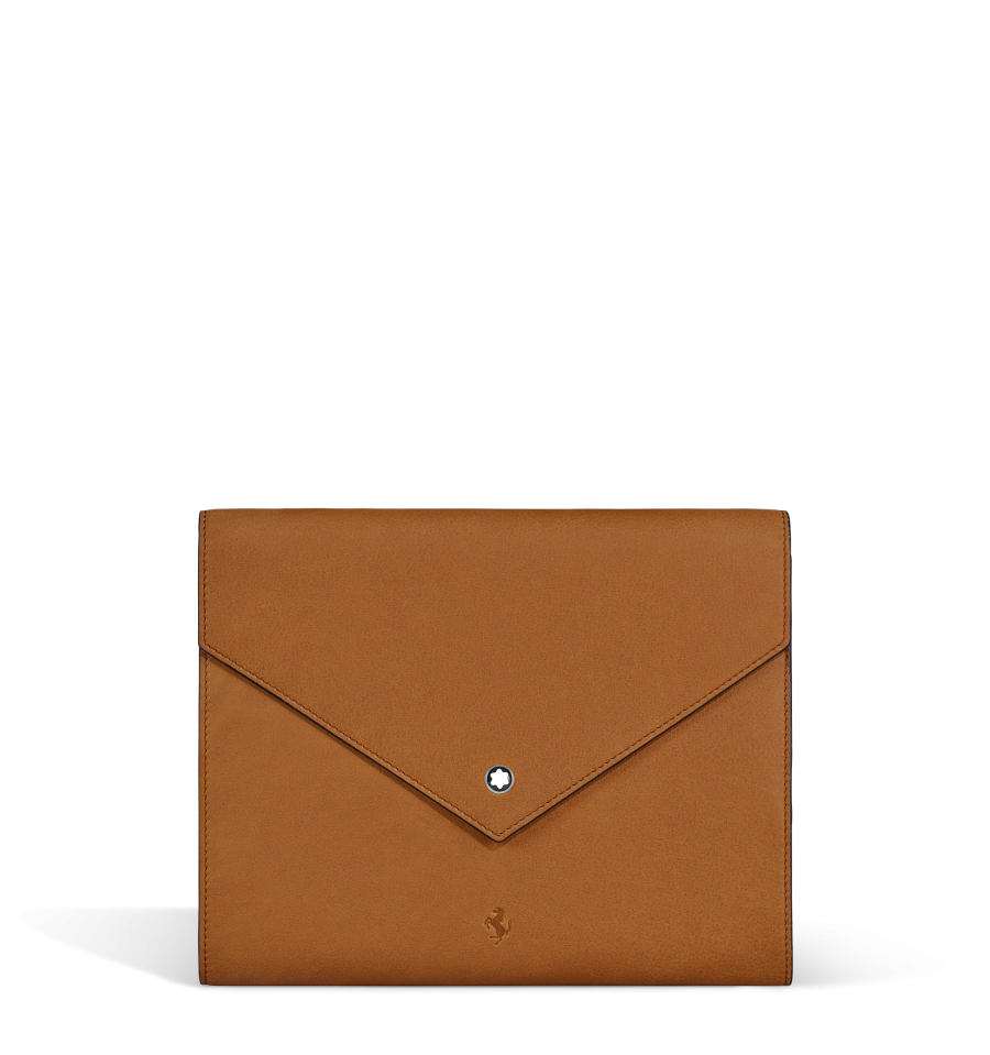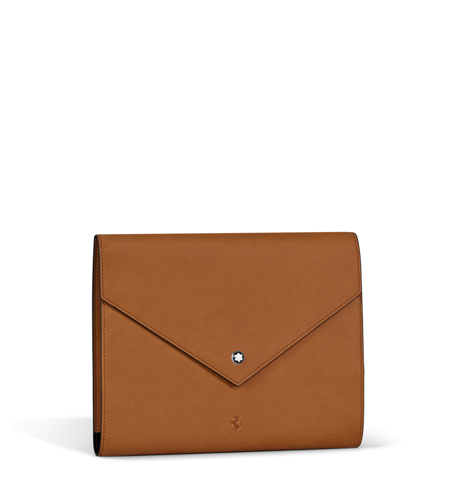 Le projet Montblanc Meisterstück Great Masters Ferrari Tailor Made est né de la rencontre de deux excellences qui partagent la même vision, basée sur l'artisanat traditionnel et l'innovation. Un chemin qui se développe en trois collections exclusives inspirées par le programme de personnalisation Ferrari Tailor Made. Classica, la première édition, célèbre l'âge d'or des voitures de Grand Tourisme des années 1950 et 1960, expression d'une élégance intemporelle. Le carnet Meisterstück Great Masters Ferrari Classica Special Edition est réalisé en cuir Ferrari Tailor Made exclusif et comporte une fermeture à bouton ornée de l'emblème Montblanc. Sur le devant se trouve le cheval cabré embossé, le signe emblématique de Ferrari. Conçu pour accueillir un bloc-notes et un stylo, l'intérieur, organisé avec deux compartiments pour cartes et deux poches pour documents, allie fonctionnalité et style, faisant de cet accessoire une pièce de collection raffinée.
