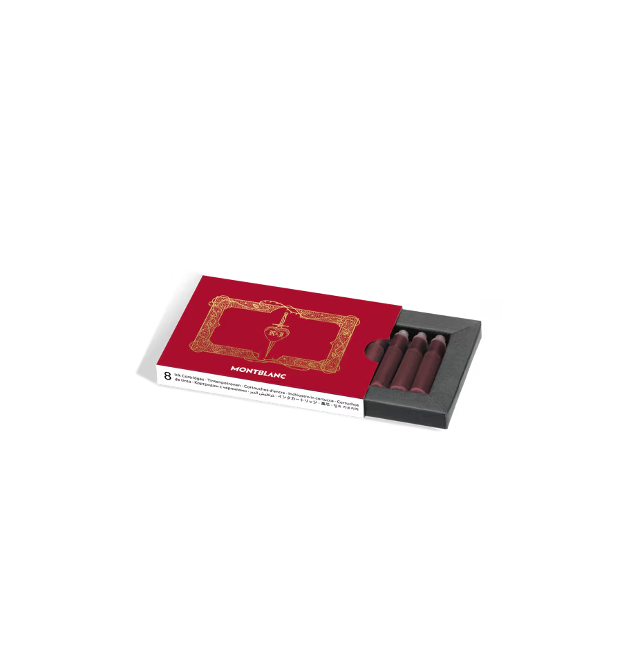 Cartouches d'encre Montblanc, Meisterstück Roméo et Juliette, rouge Verona, pack de 8 pièces Conviennent à tous les stylos plume Montblanc avec système de cartouche. 8 recharges par boîte