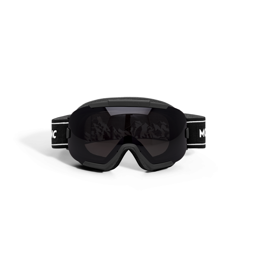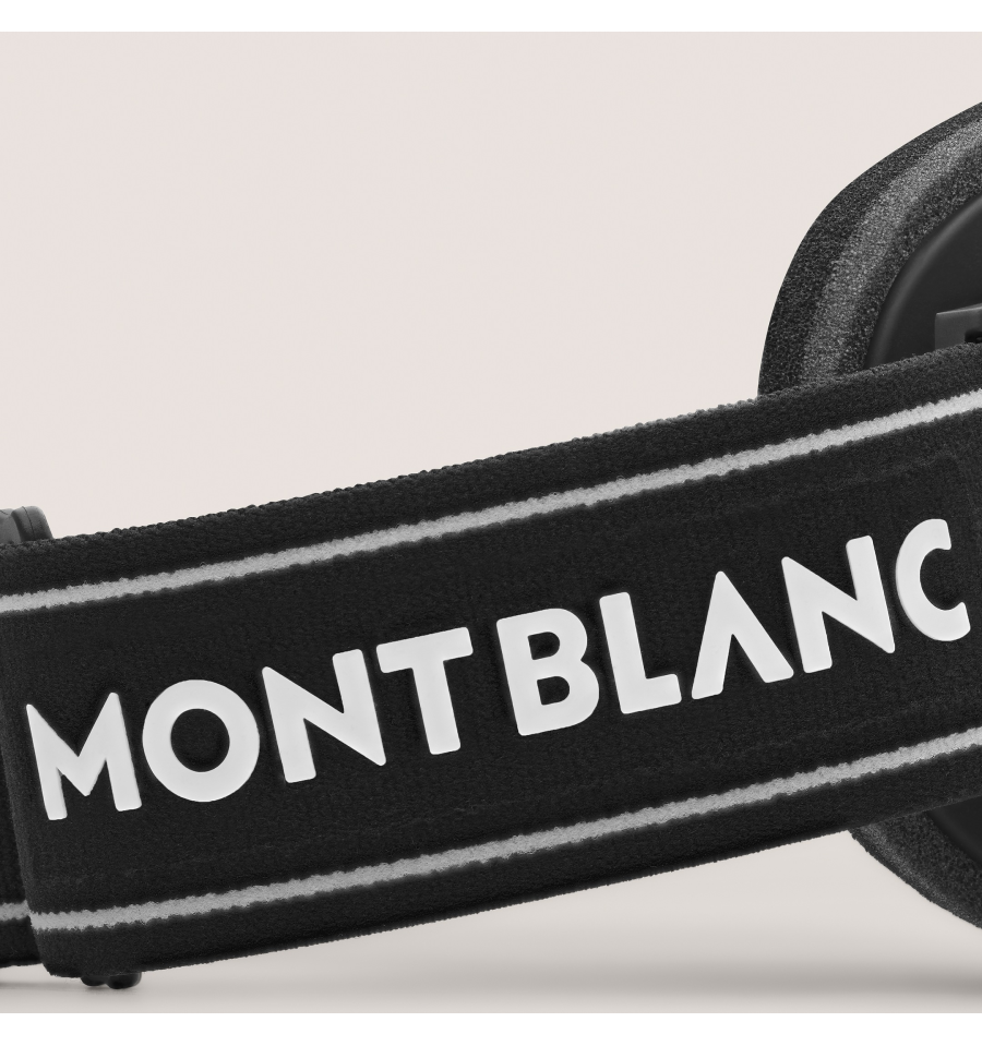 Ce masque de ski rectangulaire possède une monture noire en acétate et des verres noirs. Il est doté de verres photochromiques qui s’adaptent aux conditions météorologiques. Le logo Montblanc est brodé en toutes lettres sur la bande en jacquard dotée de détails en caoutchouc à l'intérieur pour assurer une tenue confortable.