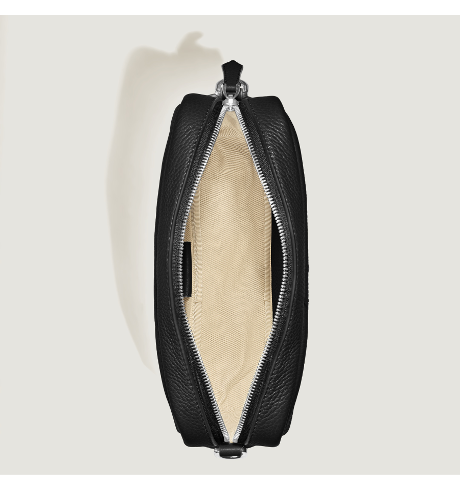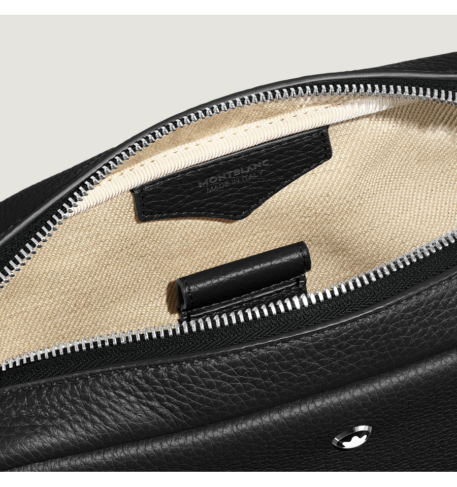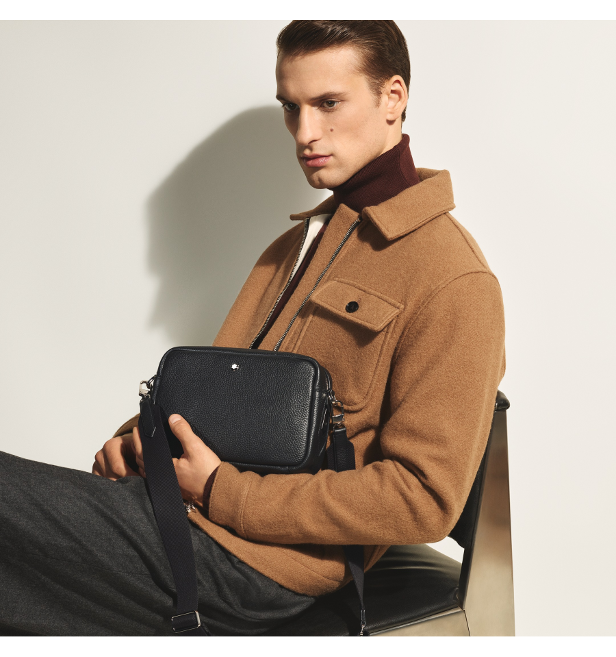 Confectionné en cuir de veau grainé noir, ce petit sac à bandoulière présente une silhouette rectangulaire rehaussée de détails en cuir Meisterstück, ainsi qu'une tirette en forme de plume audacieuse et d'élégantes coutures sellier rappelant la trace d'un stylo. Conçu pour être pratique, il est doté d'un compartiment principal avec une poche ouverte et de deux pattes pour instruments d'écriture, tandis que la bandoulière réglable et amovible permet de le porter en toute simplicité et élégance.