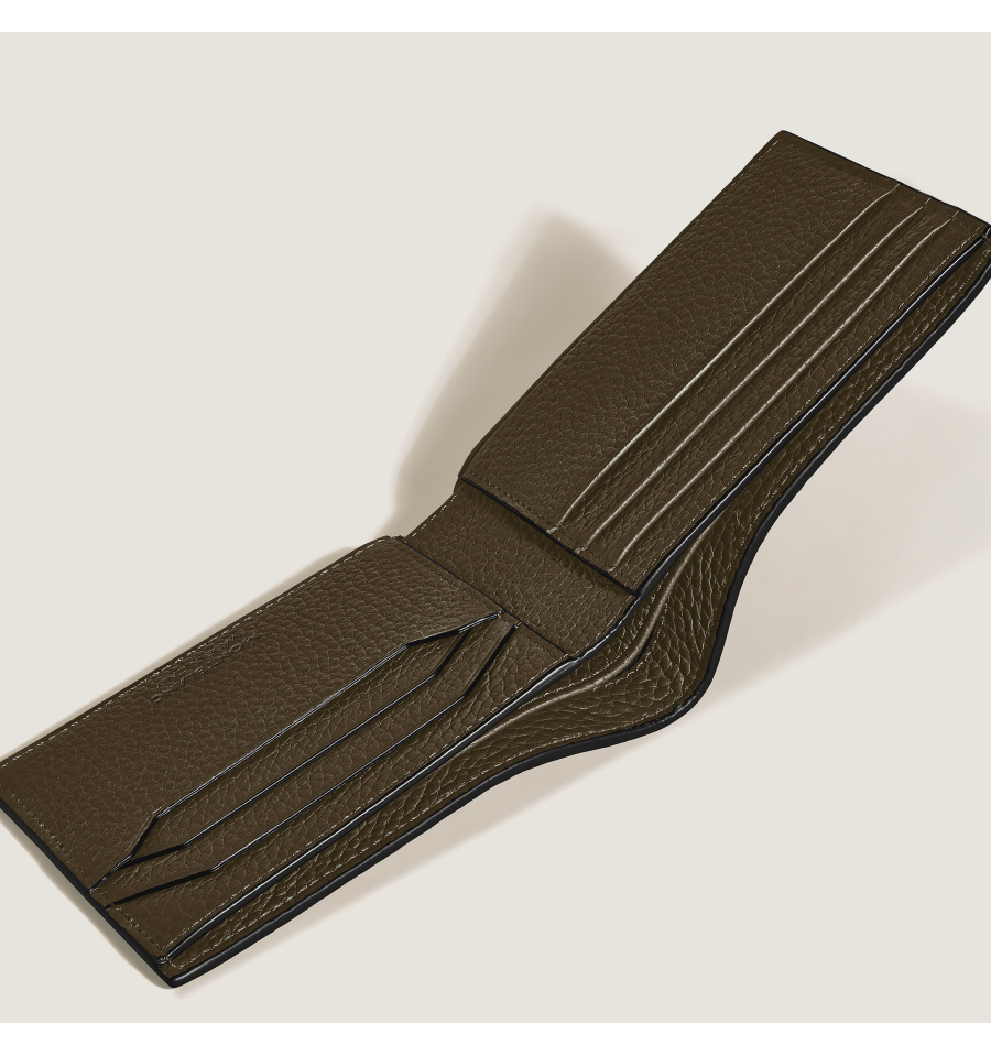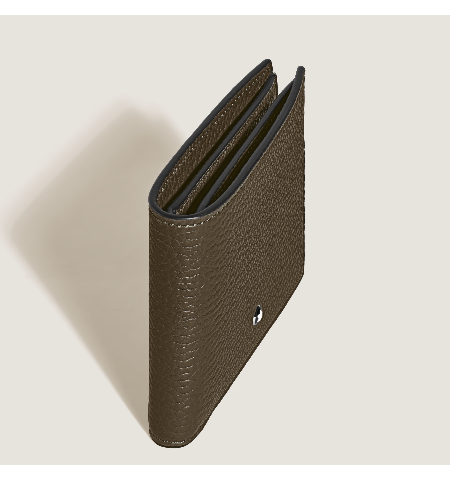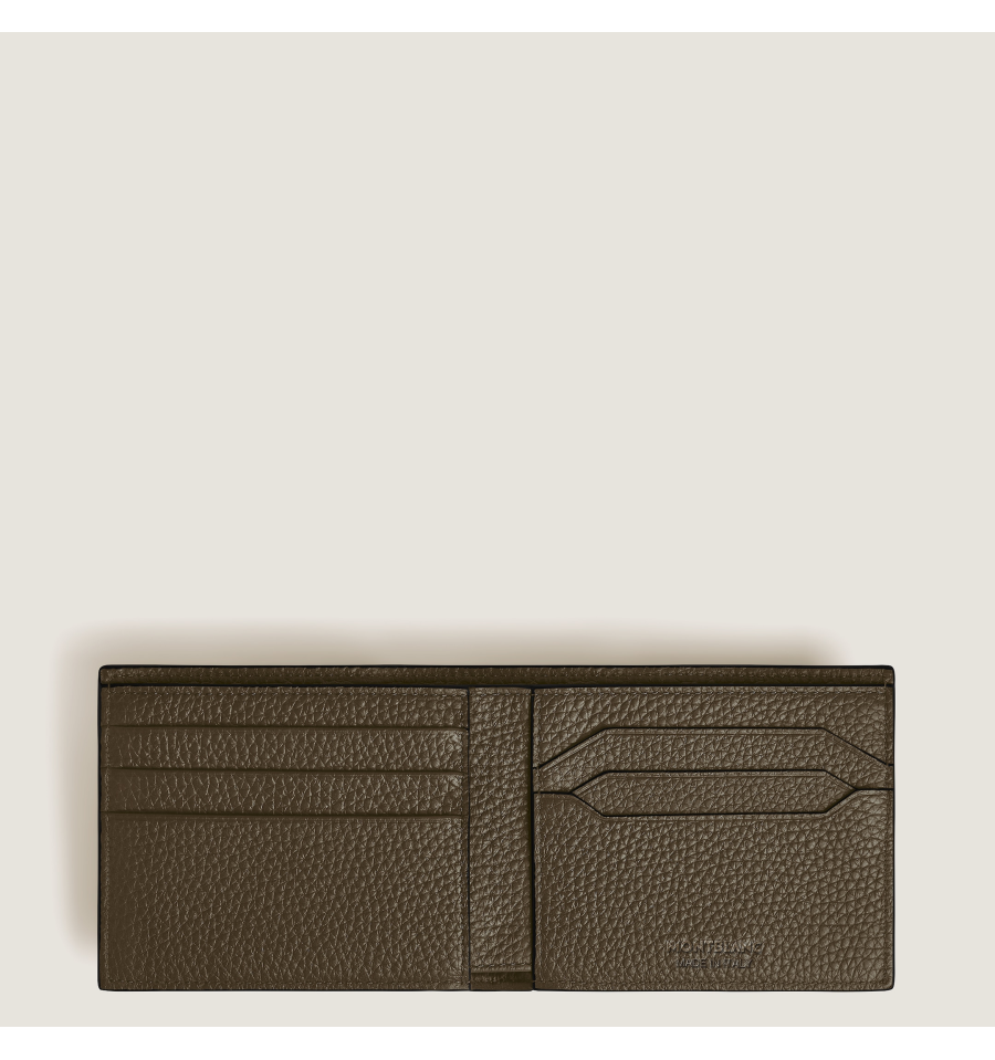 Fin et sophistiqué, ce portefeuille à deux volets classique en cuir kaki de première qualité est un choix élégant pour un usage quotidien. Conçu avec soin, il comporte six fentes pour cartes de crédit, deux compartiments pour les billets et deux poches supplémentaires pour les reçus. Doublé de tissu noir et orné de l'emblème Montblanc, il allie praticité et style intemporel.