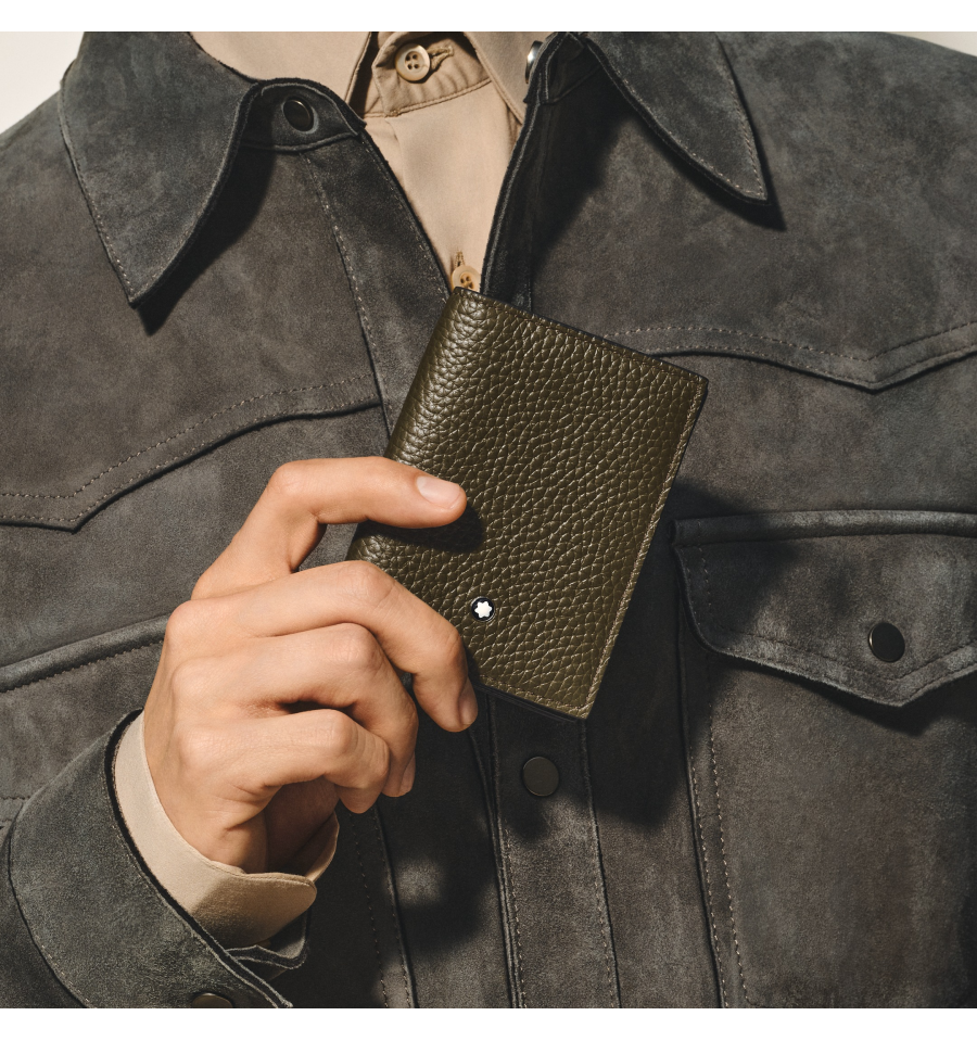 Fabriqué dans un luxueux cuir souple kaki, ce porte-cartes de poche est à la fois élégant et pratique. Il peut accueillir plusieurs cartes de visite et quatre cartes de crédit, tout en présentant l’élégant emblème Montblanc à l’avant.