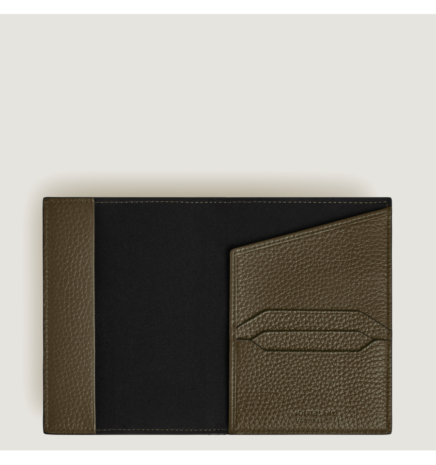 Fin et sophistiqué, ce portefeuille à deux volets classique en cuir kaki de première qualité est un choix élégant pour un usage quotidien. Conçu avec soin, il comporte six fentes pour cartes de crédit, deux compartiments pour les billets et deux poches supplémentaires pour les reçus. Doublé de tissu noir et orné de l'emblème Montblanc, il allie praticité...