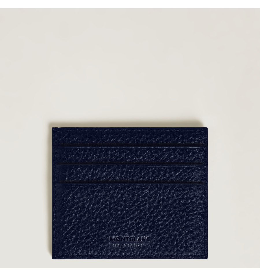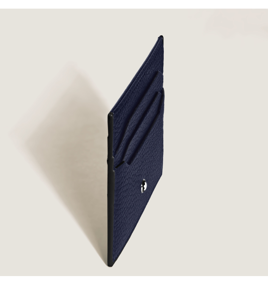 Ce porte-cartes élégant, confectionné dans un élégant cuir grainé bleu nuit, est une façon astucieuse d'ajouter une touche de luxe à votre quotidien. Son design compact se glisse facilement dans une poche et peut accueillir six cartes de crédit, ainsi qu'un emplacement supplémentaire pour vos petits objets essentiels.