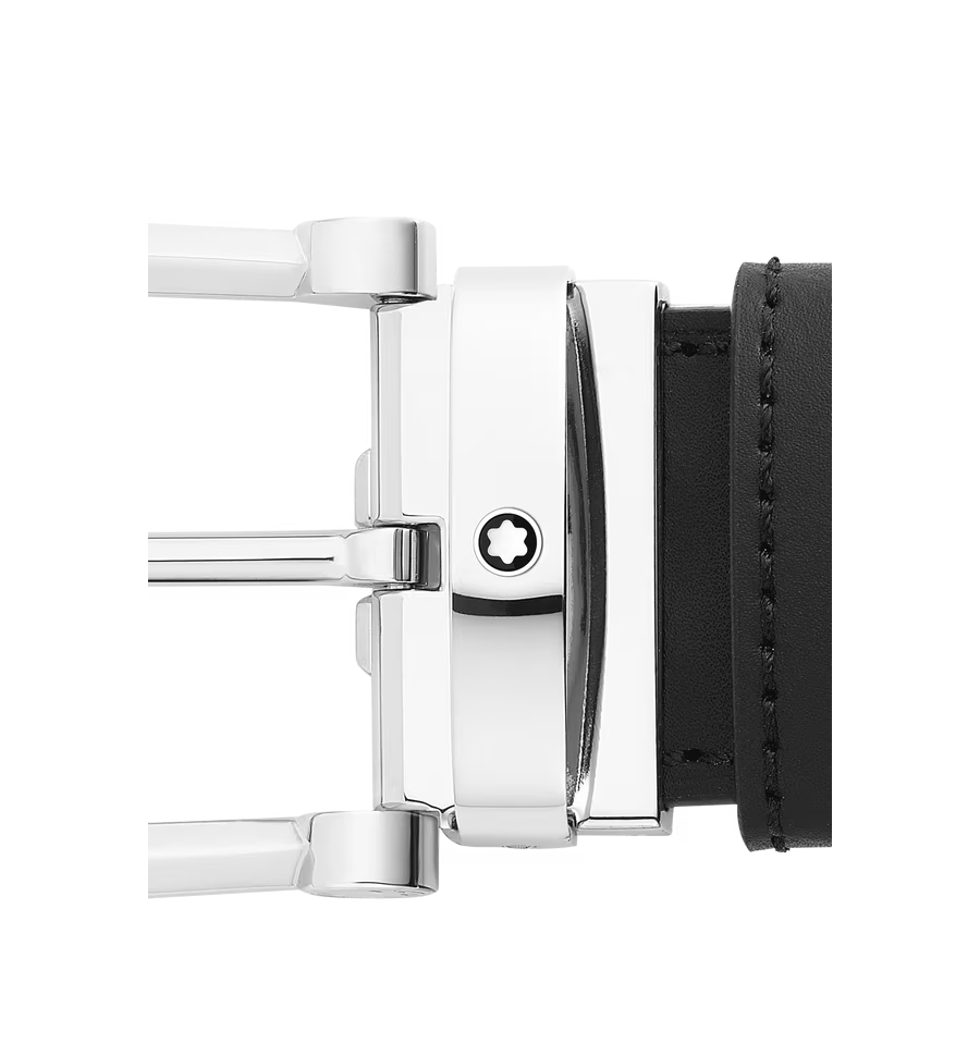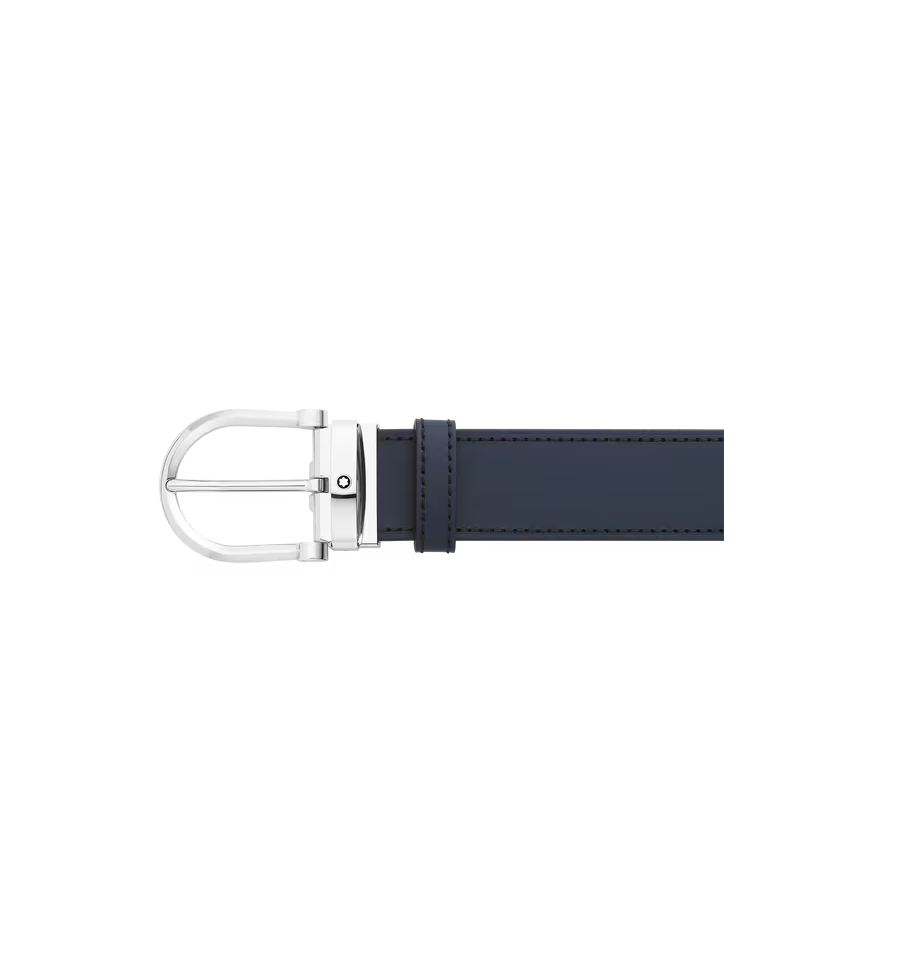 Ce bijou, tissé à partir de cuir bleu cendré, est doté d’une boucle en acier inoxydable poli rehaussée de l'emblème Montblanc.
