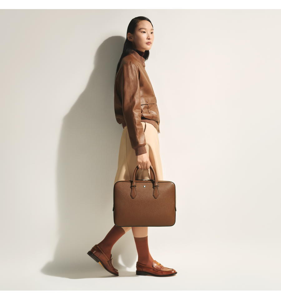 Ce porte-documents fin associe l'héritage de Montblanc à une fonctionnalité épurée et moderne. Confectionné en cuir embossé Sartorial de couleur fauve, il est taillé pour les besoins professionnels. Le compartiment principal spacieux offre un grand espace pour les documents A4, les appareils électroniques et les instruments d'écriture. Sa bandoulière réglable et amovible permet de le porter de plusieurs façons, ce qui en fait un choix raffiné et pratique pour les professionnels.