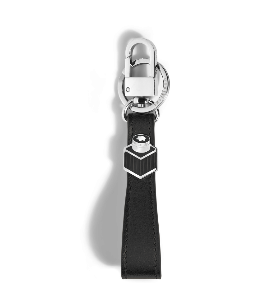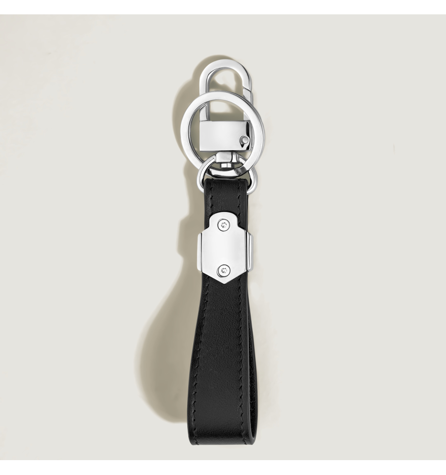 Ce porte-clés, fabriqué en cuir lisse Meisterstück noir, présente un logo Montblanc subtil et un design de flacon d'encre laqué qui ajoute une touche distinctive à sa forme classique. Conçu pour être pratique, il comprend un anneau sécurisé pour plusieurs clés et un mousqueton facile à fixer sur les sacs.