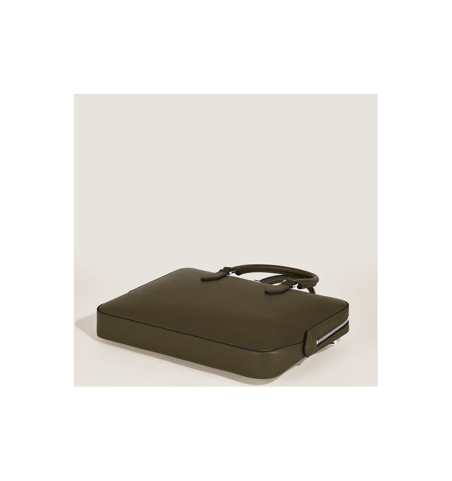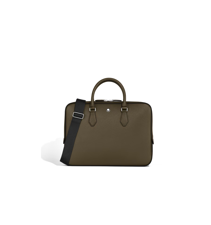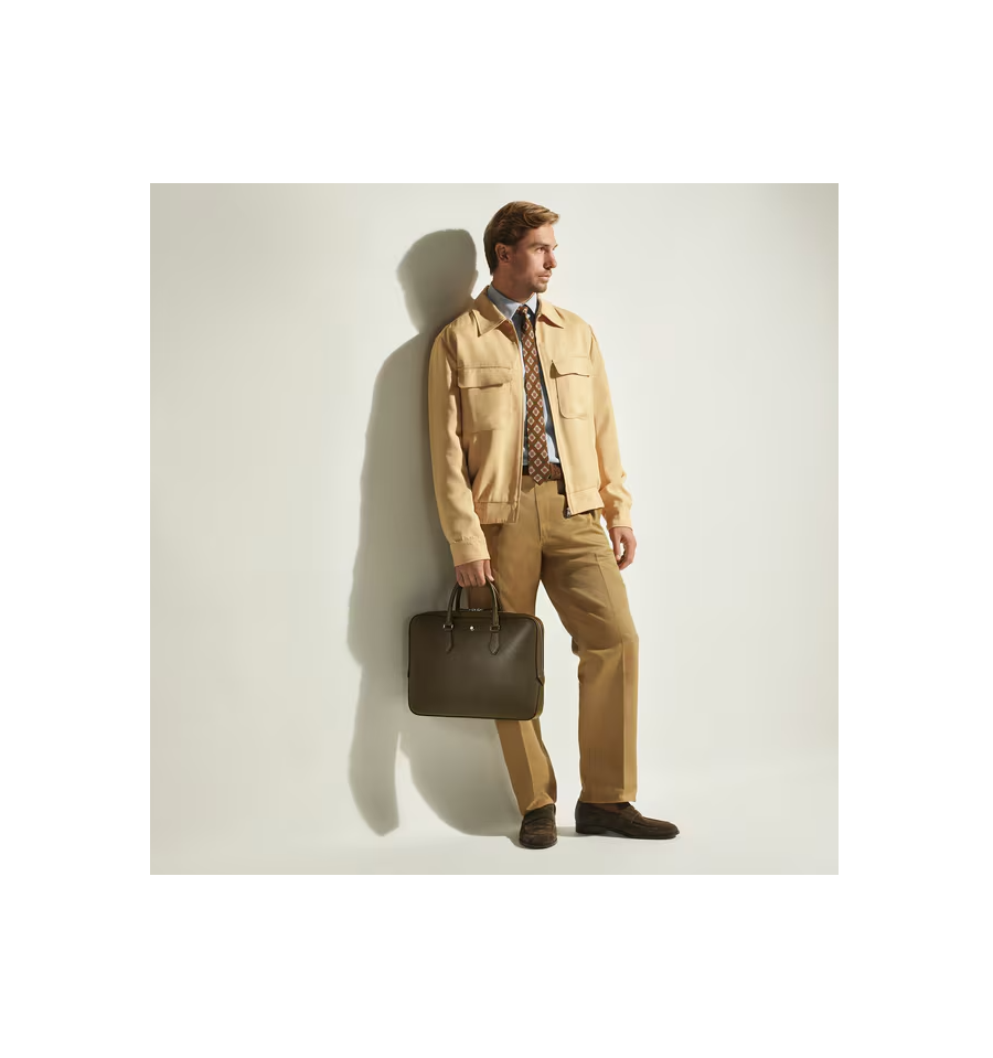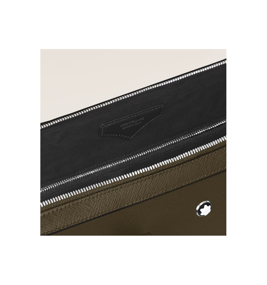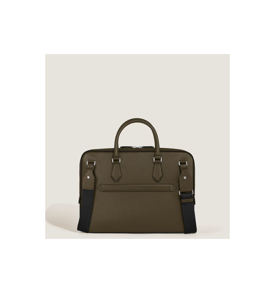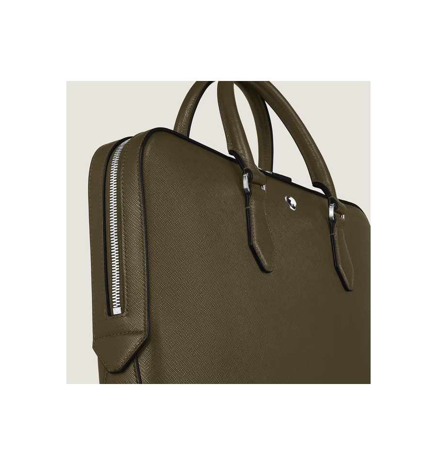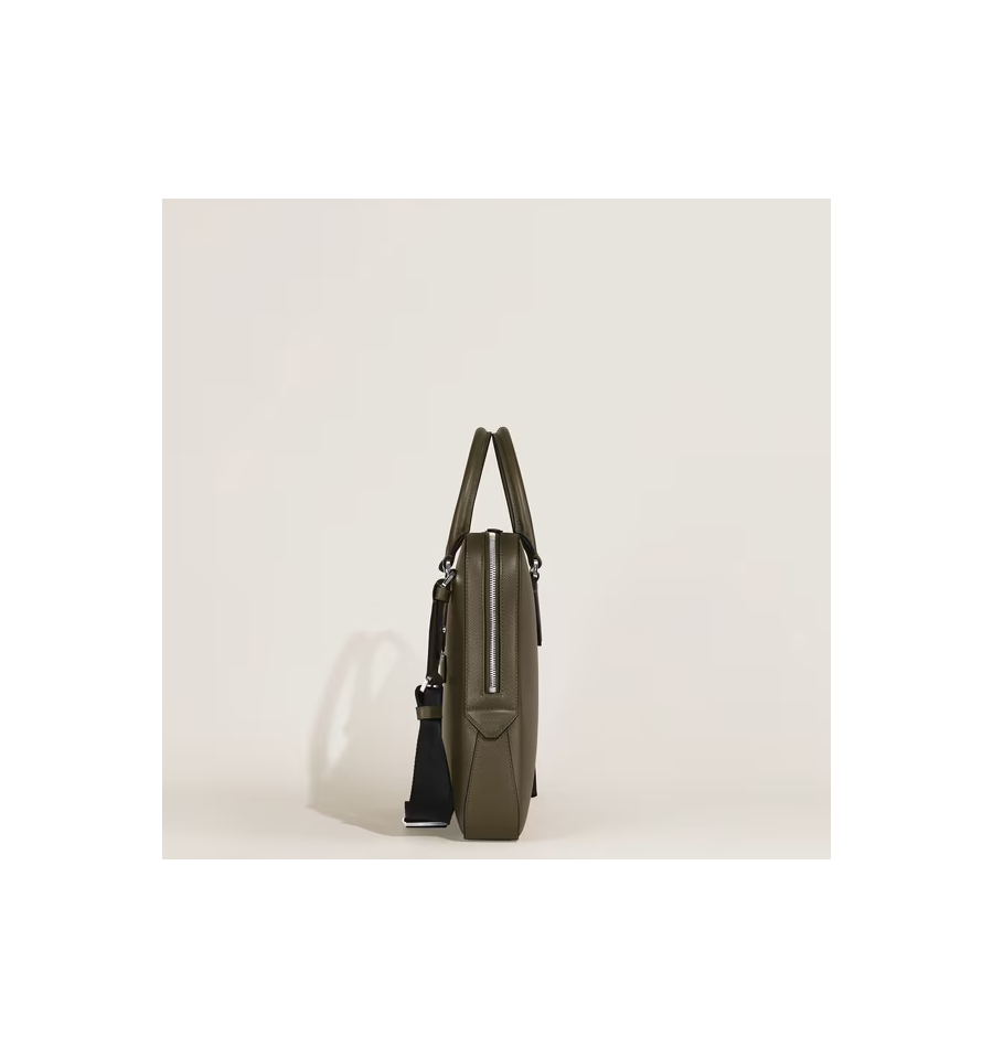Ce porte-documents fin associe l'héritage de Montblanc à une fonctionnalité épurée et moderne. Confectionné dans un cuir Sartorial embossé dans une teinte élégante de kaki, il est conçu pour répondre aux besoins professionnels, ce qui en fait un choix raffiné et pratique pour les affaires. Le compartiment principal spacieux offre suffisamment de place pour des dossiers A4, des appareils électroniques et des instruments d'écriture, tandis que la bandoulière amovible et réglable offre plusieurs options de transport.