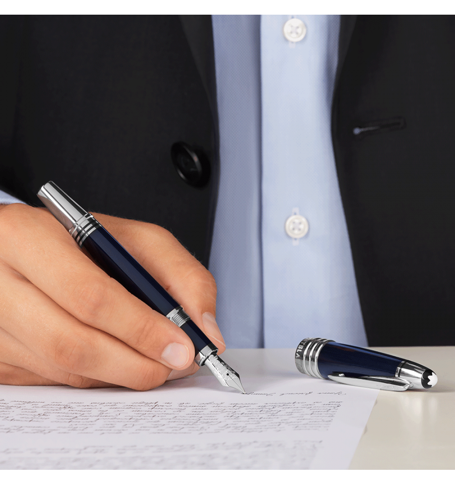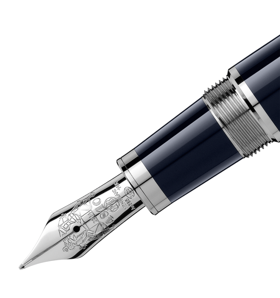 Commémorant l'une des personnalités les plus appréciées de l'Histoire contemporaine, le stylo plume John F. Kennedy Édition Spéciale comporte des références symboliques de la vie de J.F. Kennedy dans de subtils détails de design. La résine précieuse bleue fait référence à la fois à la carrière de Kennedy dans l'U.S.Navy et au style de la célèbre Ivy League. Ses initiales "JFK" sont gravées sur l'agrafe platinée, et les trois bagues platinées ornant le capuchon représentent les trois frères de Kennedy. En hommage aux rêves et aux espoirs de la nation américaine incarnés par le programme spatial Apollo, le projet phare cher à Kennedy, la plume en or 14K fabriquée à la main est gravée d'une représentation du module lunaire qui s'est posé sur la Lune en 1969. Cette Édition Spéciale est couronnée par un emblème Montblanc en résine précieuse.